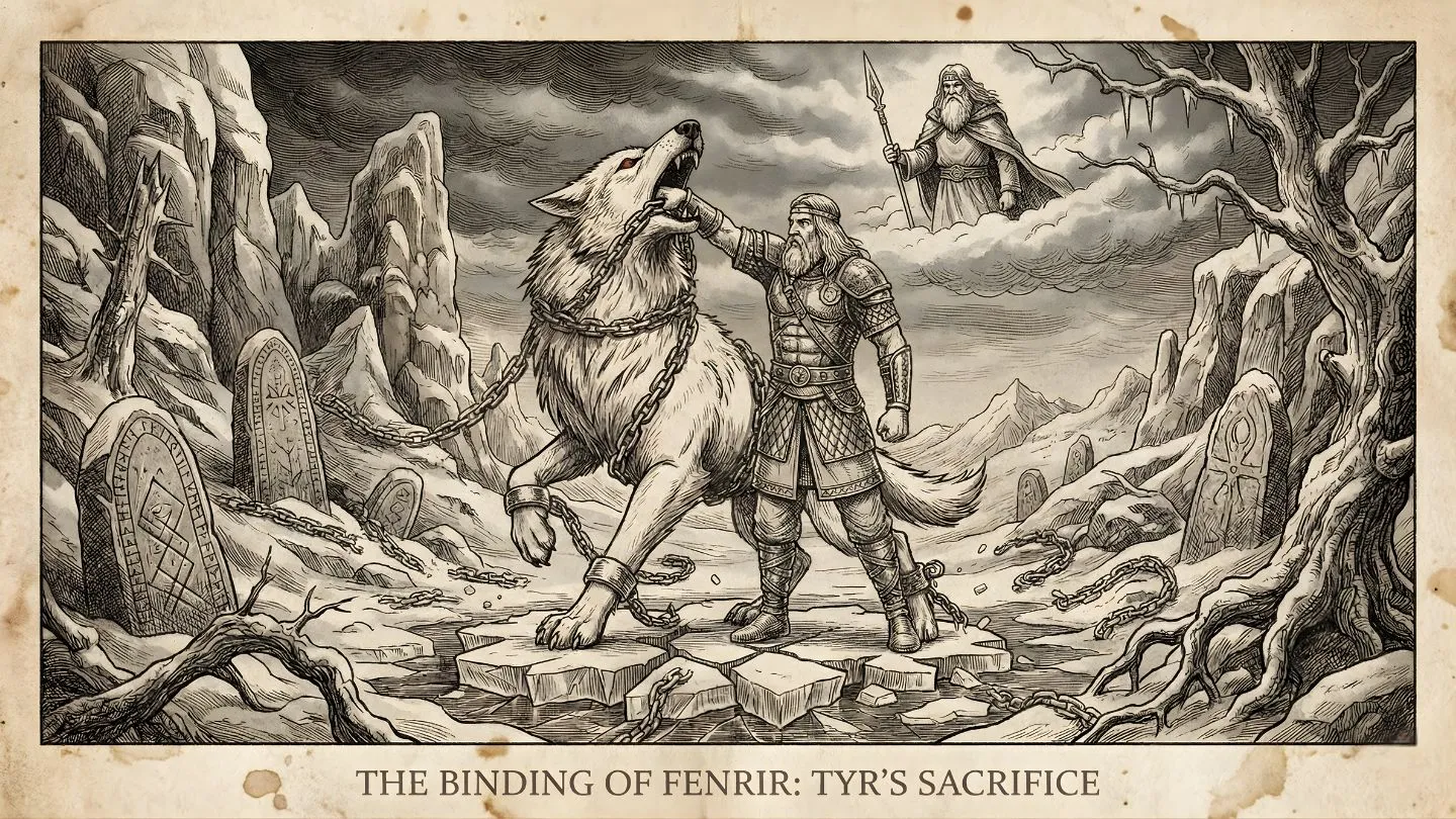 The prophecy of Ragnarok begins not with a shout but with the snapping of a chain. Fenrir is the monstrous wolf son of Loki whom the gods feared enough to betray. Bound by the magical ribbon Gleipnir and gagged with a sword, he waits in the darkness for the end of the age. His story is one of inevitable fate and the price of fear. While the Aesir believed they were containing chaos, they were merely delaying the moment their own actions would come back to haunt them.