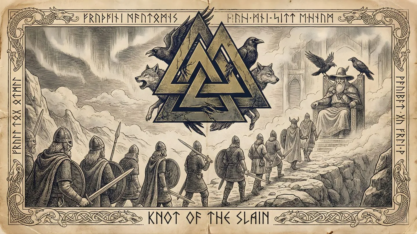 Valknut translates to "knot of the slain" in Old Norse. It marks warriors chosen by Odin for Valhalla. The symbol appears on runestones depicting death, sacrifice, and the afterlife, representing the inescapable nature of fate and the warrior's acceptance of death with honor.