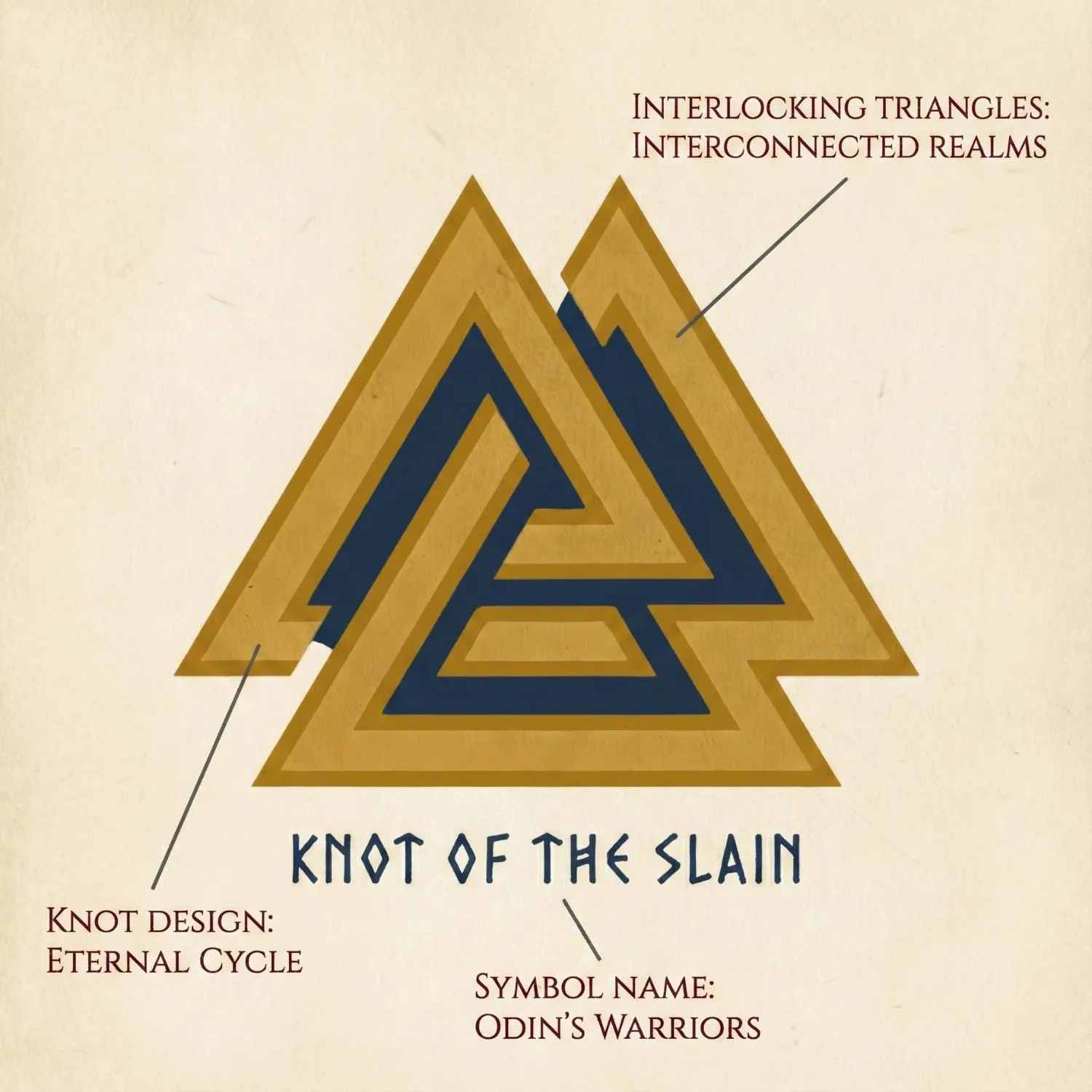 Unlike Mjölnir (Thor's hammer) or Yggdrasil (world tree), the Valknut specifically represents death and the afterlife. It's associated exclusively with Odin in his role as chooser of the slain. This is not a general protection symbol but a mark of those who embrace fate.